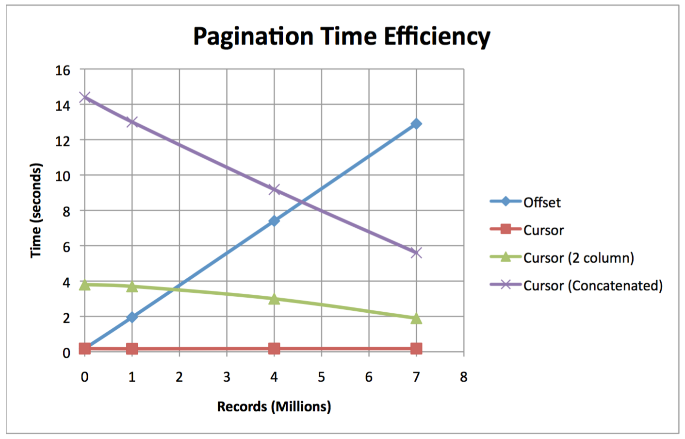 오프셋 페이징을 사용하면 동일한 작업에 13초가 걸렸다. 다시 말해, 각 페이지를 불러올 때마다 13초가 걸린다는 것이다.