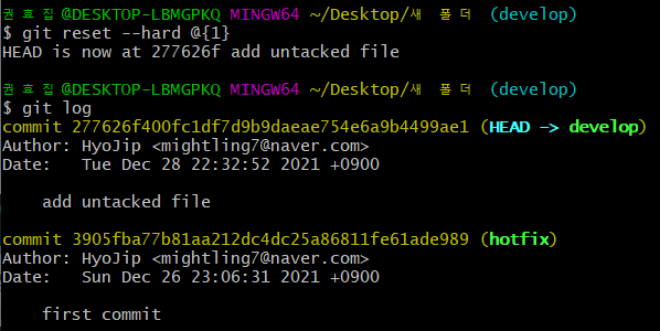 로컬에서만 커밋한 거면 reset으로 커밋 히스토리를 안남기고 깔끔하게 복원할 수 있지만,