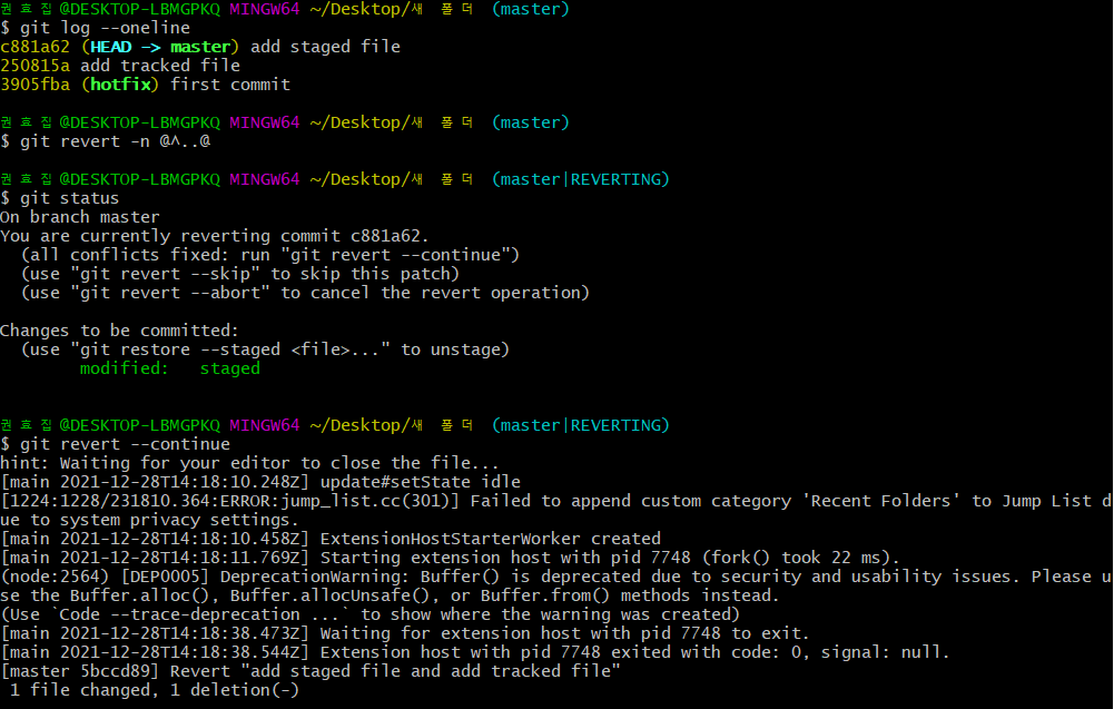 단일 커밋 취소, 커밋 메시지 자동 생성