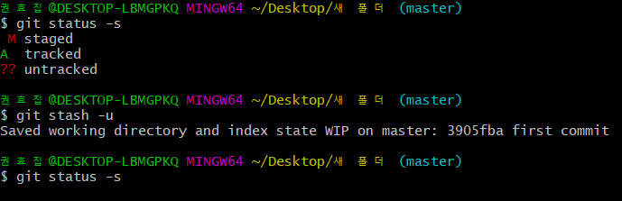 stash 스택 적용 및 삭제, <> 부분이 생략되면 스택 가장 윗부분이 제거됨