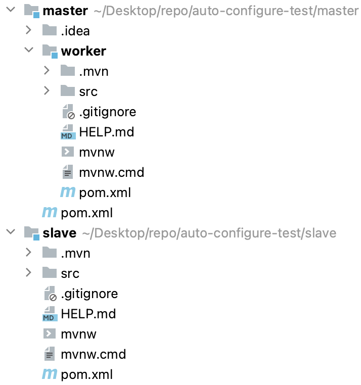 - Master프로젝트를 parent로 하고 worker를 import 하는 클라이언트 프로젝트다.
